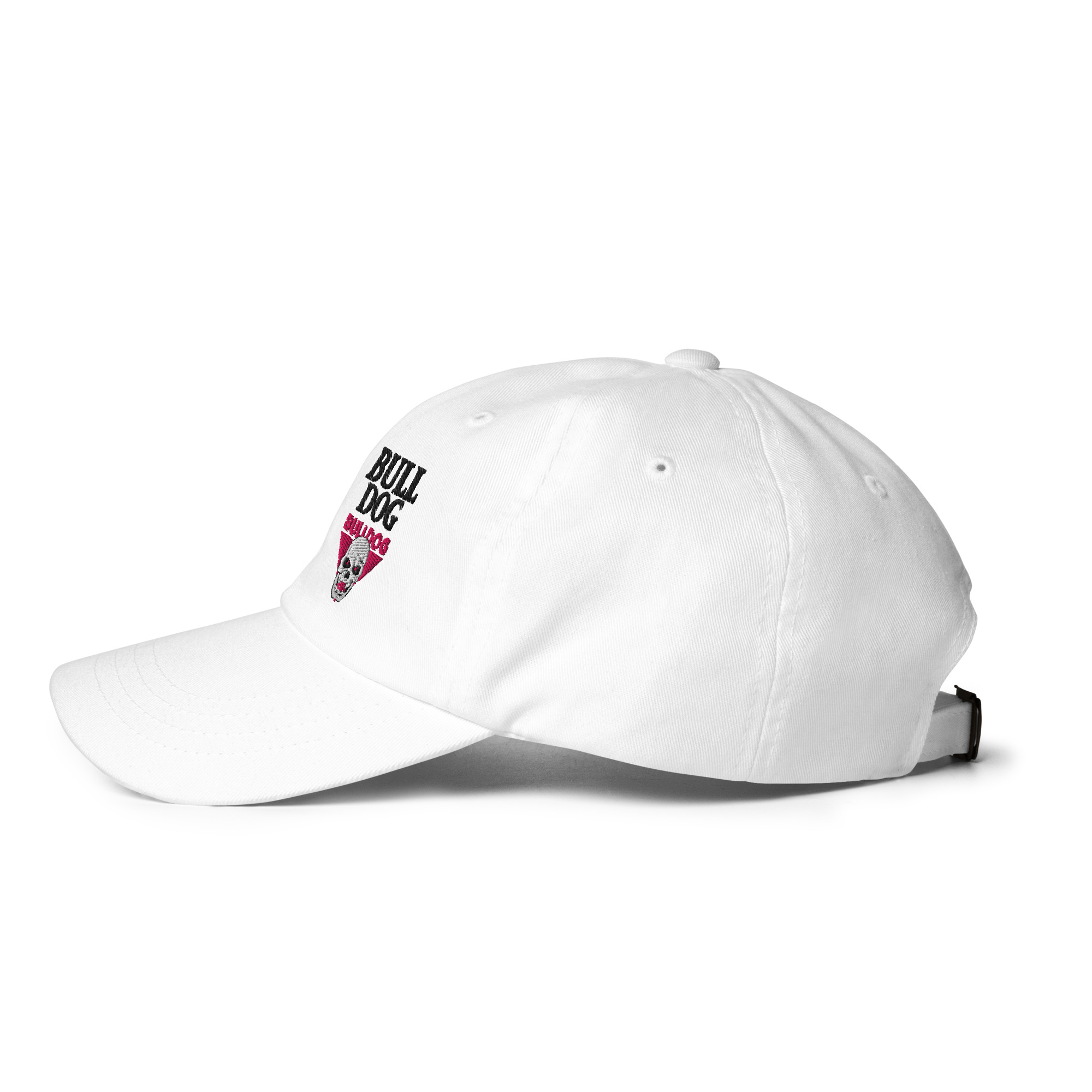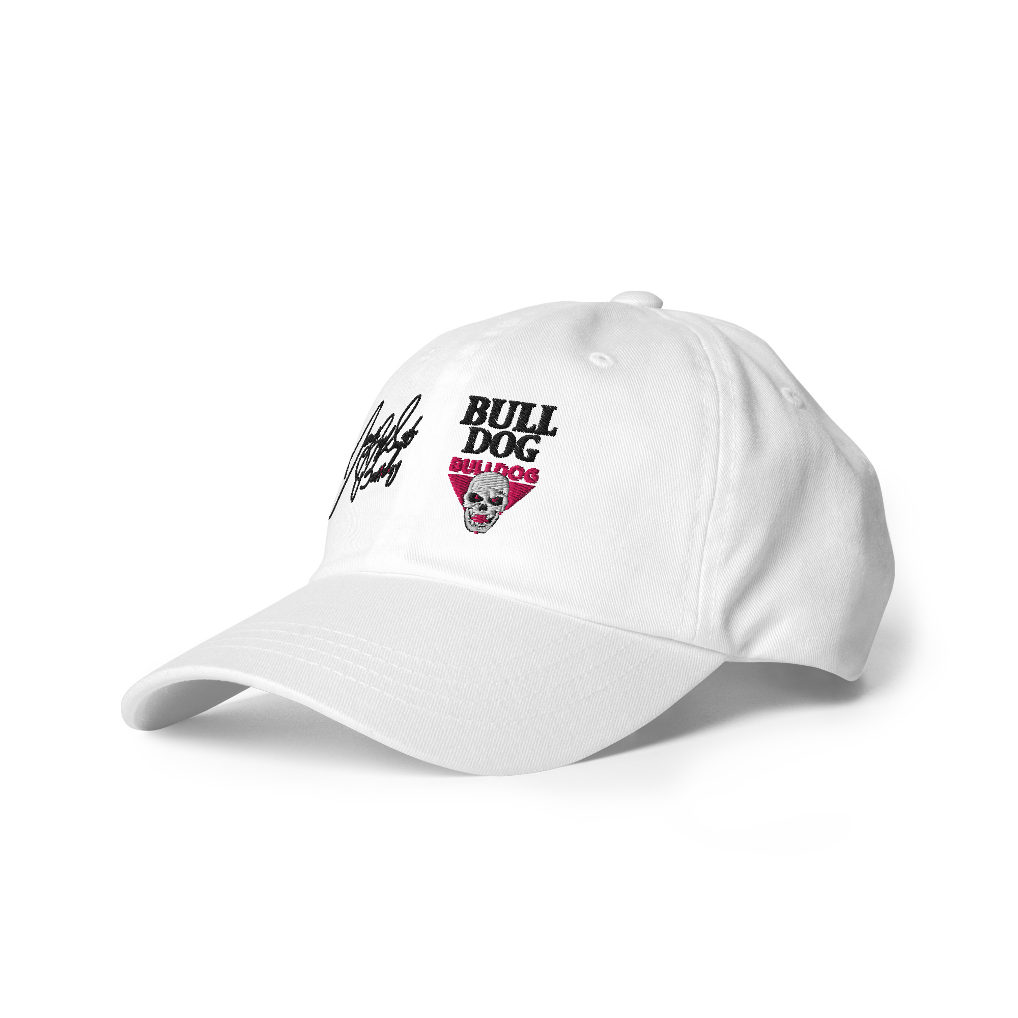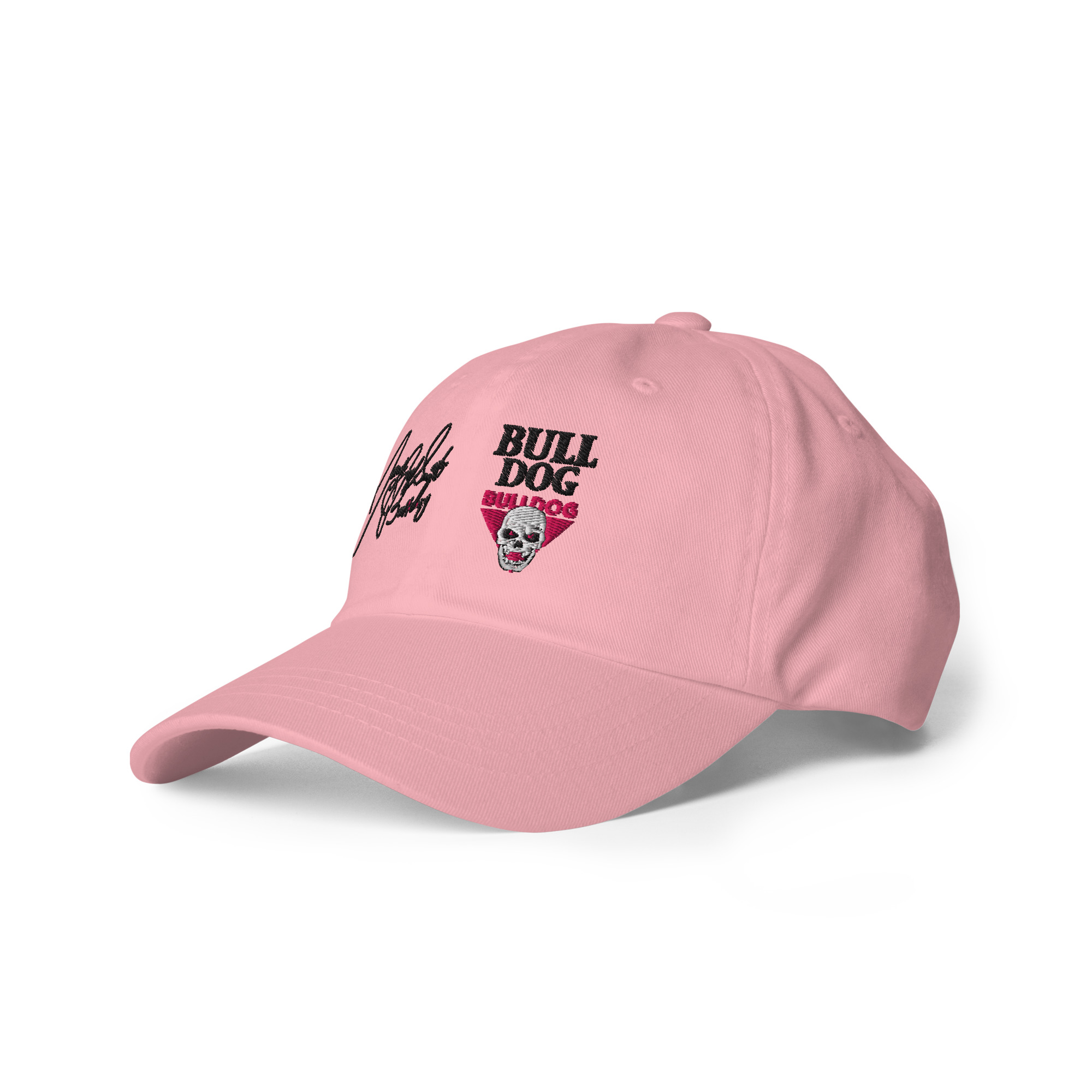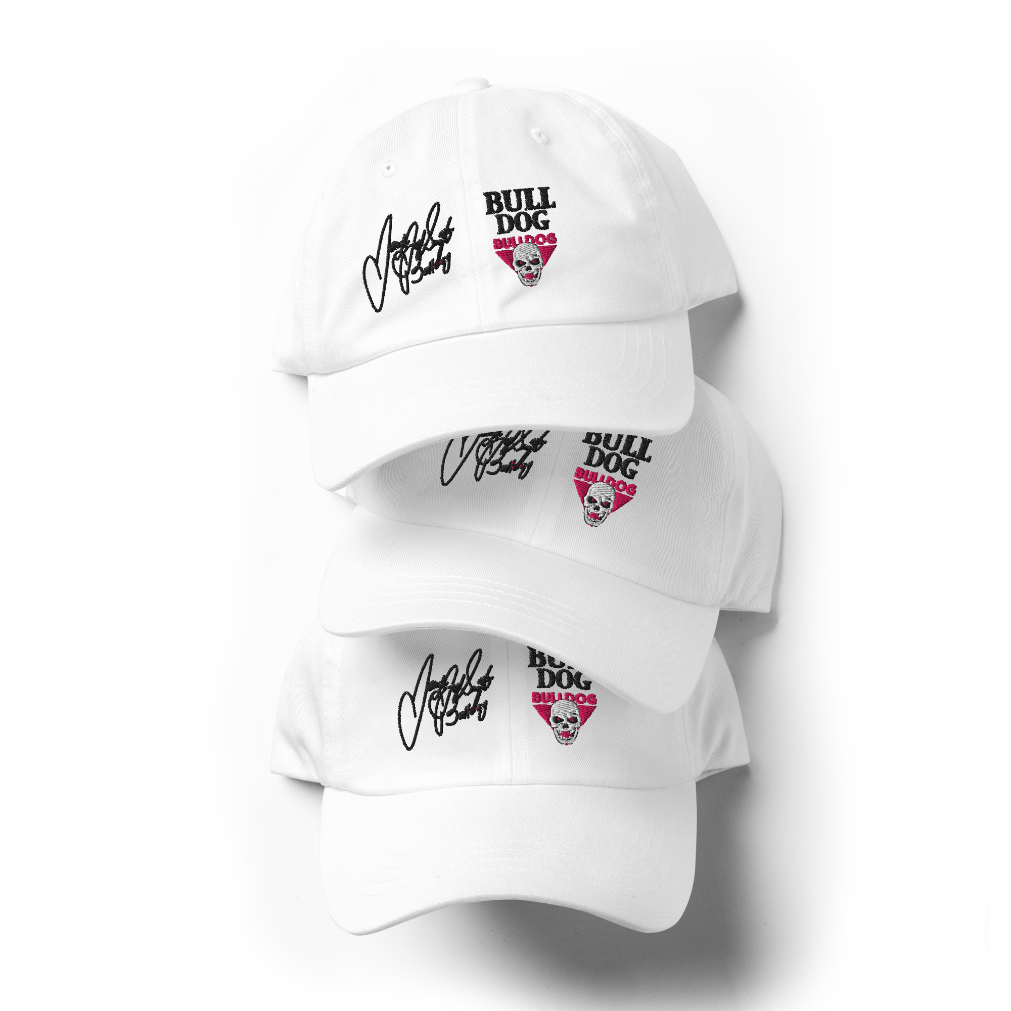 This British Bulldog hat has a low profile with an adjustable strap and curved visor. Features Davey’s signature and Hart Foundation logo.